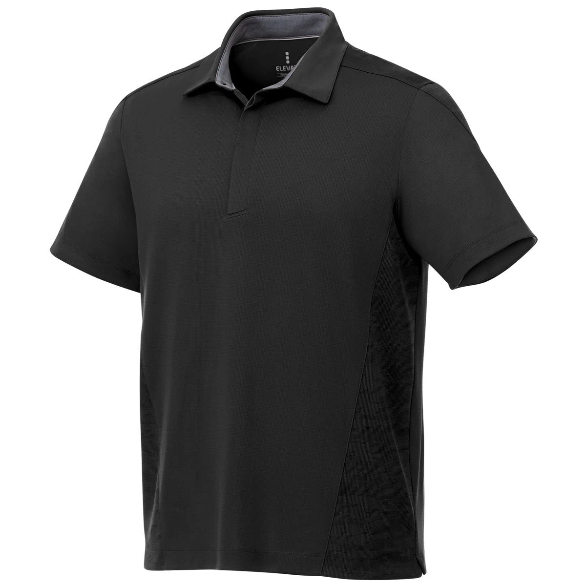 Add a company logo to the Elevate Men’s Black Piedmont Short Sleeve Polo for a look that is professional and functional. This polo offers subtle graphic and reflective details that help get you noticed whether at work or hanging with friends. Try a custom logo to create a custom gift for friends and family or use these polos to support a cause or organization. The hidden button placket and UPF of up to 40+ are just the beginning. This polo is also snag resistant, moisture wicking, and offers wash and wear performance. This short goes well beyond the basic polo.