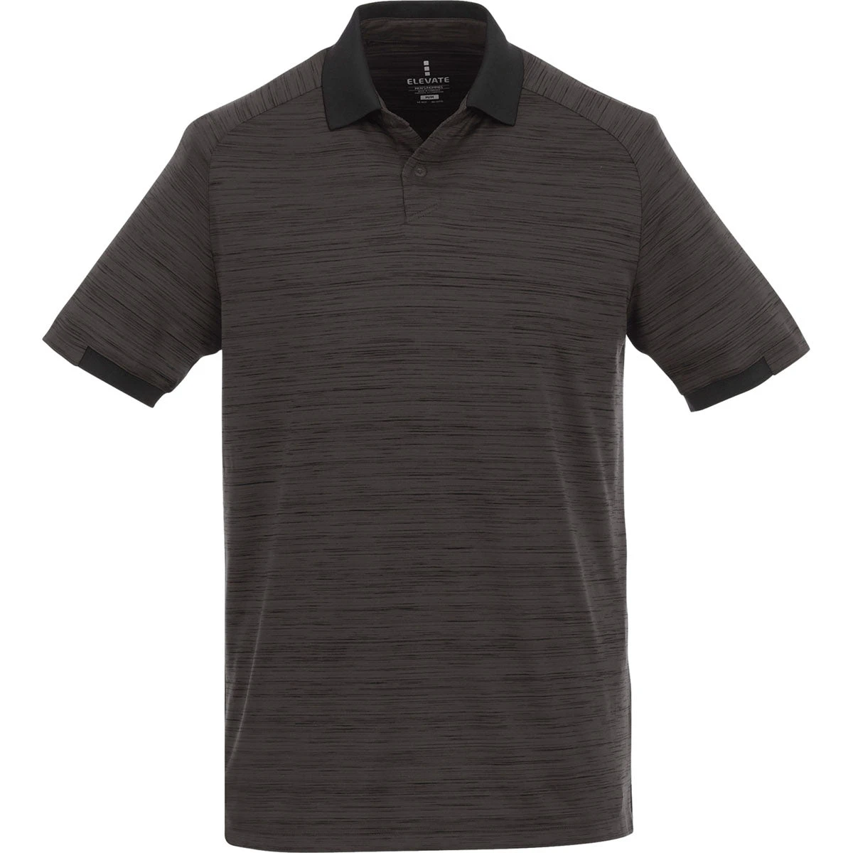 Give your customers and employees a sophisticated, preppy look with this Elevate Men’s Black Smoke Heather/Black Emory Short Sleeve Polo shaped from micro polyester heather jersey peached knit. Sporting a classic cut, this polo gives him a versatile style that looks great as everyday vogue or at corporate get-togethers. Engineered with moisture wicking, the Emory polo is snag resistant with UV protection and an anti-microbial finish. Its contrasting rib sleeves provide a perfect location for your custom logo. Polo shirts adorned with a company logo given as gifts or giveaways are a great way to broadcast your name and build brand awareness.