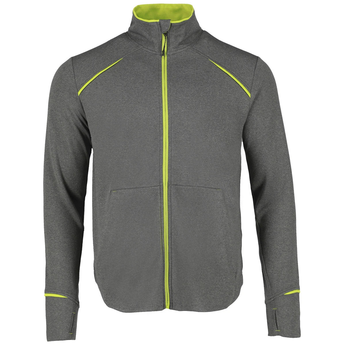 Add embroidery to the Elevate Men’s Hi-Liter Green/Heather Charcoal Tamarack Full Zip Jacket for a professional look that can serve as a corporate uniform for easy recognition or just everyday wear as you run errands. This sleek polyester textured interlock doubleknit is snag resistant with wash and wear design. The base color is gorgeous, but the pops of color on the inner collar, zipper, and along certain seams are what makes it shine. Choose a custom embroidery to create a jacket that supports your team, organization, or cause with pride. Thumb exits make this an easy to layer option and zippered pockets keep small items secure.