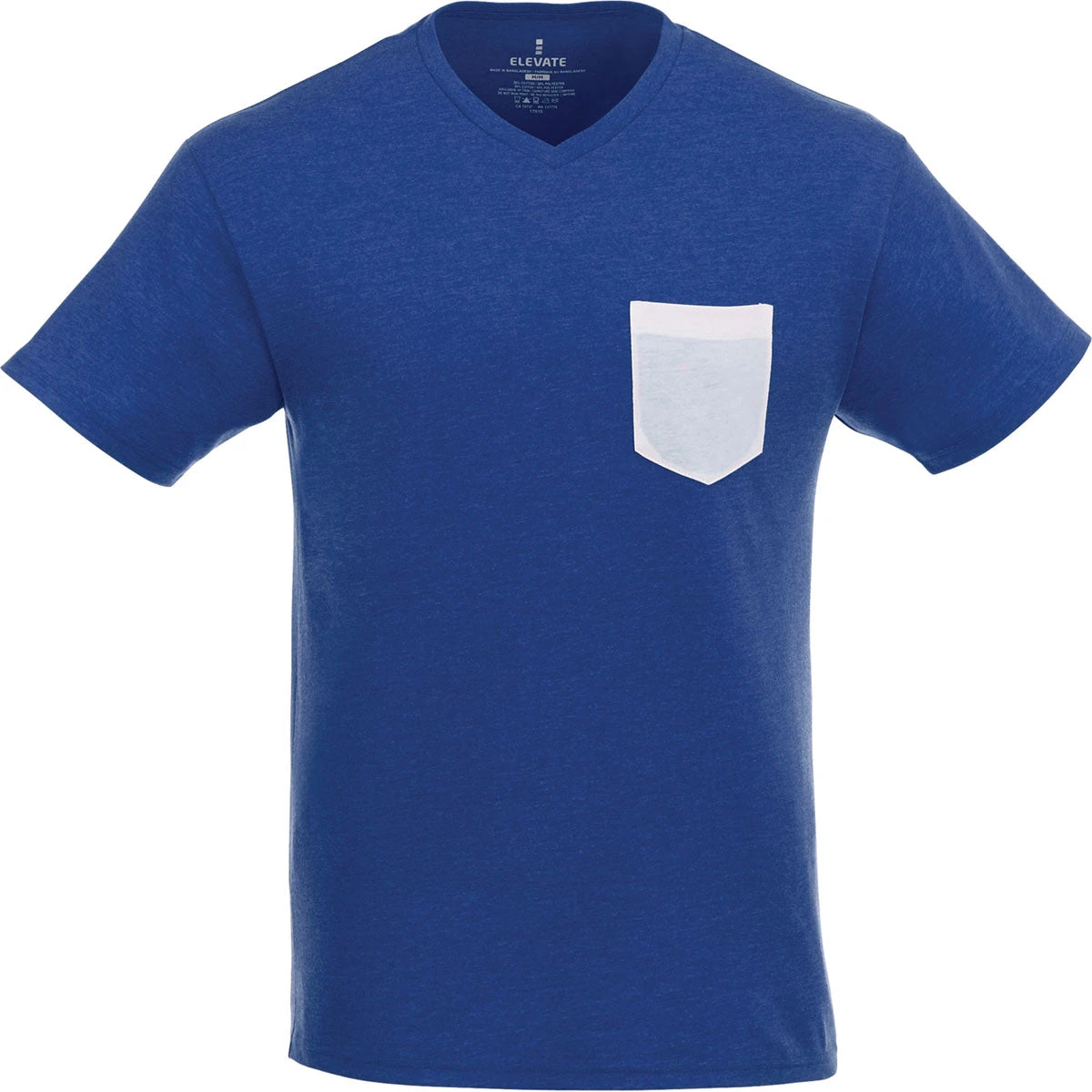 If there is one true star that shines all the year when it comes to season-spanning fashion, it is the T-shirt. And, a custom-logoed shirt has always been a great way to build brand recognition or to promote sports events, business, services, cause, or organization. Consider the Elevate Men’s New Royal Heather/White Monroe Short Sleeve Pocket Tee for your upcoming promotional giveaway spree. A contrast chest pocket lends a casual-chic storage place to this on-trend t-shirt. Highlights include v-neck rib knit collar and tagless heat transfer label. Crafted from a lightweight cotton-blend fabric. Gain more exposure and crowd when you give out this Men’s Monroe Short-Sleeve Pocket Tee at your next event.