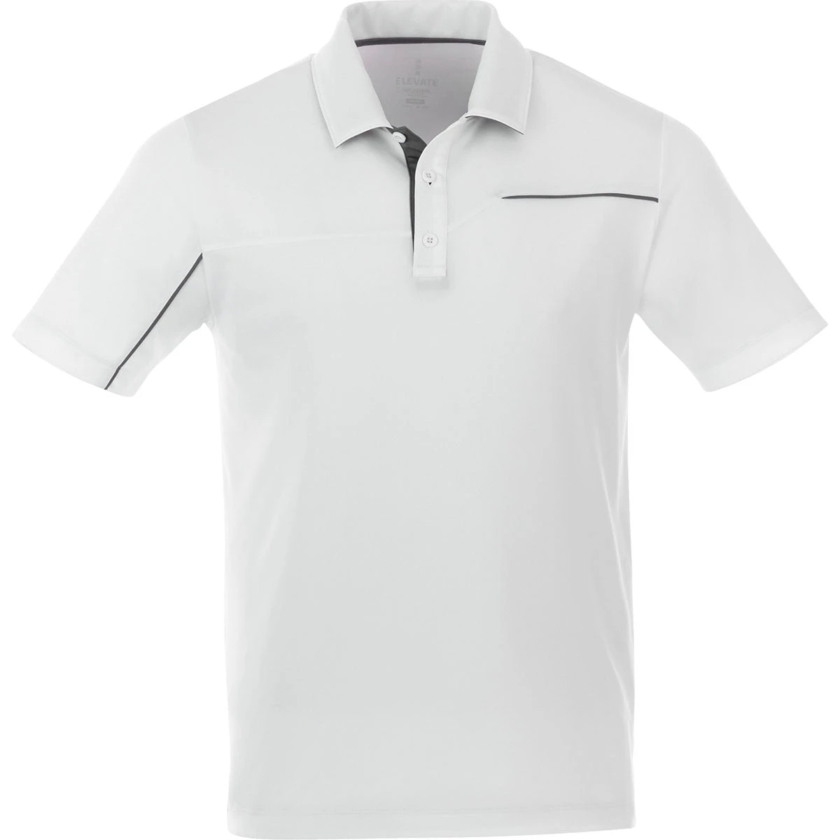 Elevate Men’s White/Steel Grey Wilcox Short Sleeve Polo is characterized by asymmetrical accents that work to direct attention towards your custom logo. This polo is crafted from breathable fabric for ultimate all-day comfort. Great for the boardroom or outdoors, this men’s polo wicks away moisture, protect from sunlight and features a tagless heat transfer label. Great for corporate giveaways and promotional events, add a company logo or message! Polo shirts are widely known for the professionalism of a dress shirt and the comfort of a t-shirt. Custom logoed polos given as gifts or giveaways are a great way to build brand awareness.