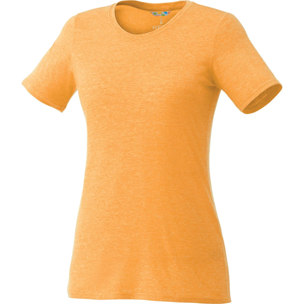 It’s not enough to put your brand out there and hope that people notice it. You have to draw attention. That starts with adding on your logo to a quality piece. And why not a T-shirt like the Elevate Women’s Amber Heather Sarek Short Sleeve T-Shirt you see here? It features durability and strength in the fabric content itself. And it’s not just good at attractiveness from afar-it holds up to close scrutiny. Just add your logo to this piece and consider your latest branding goal a mission accomplished.