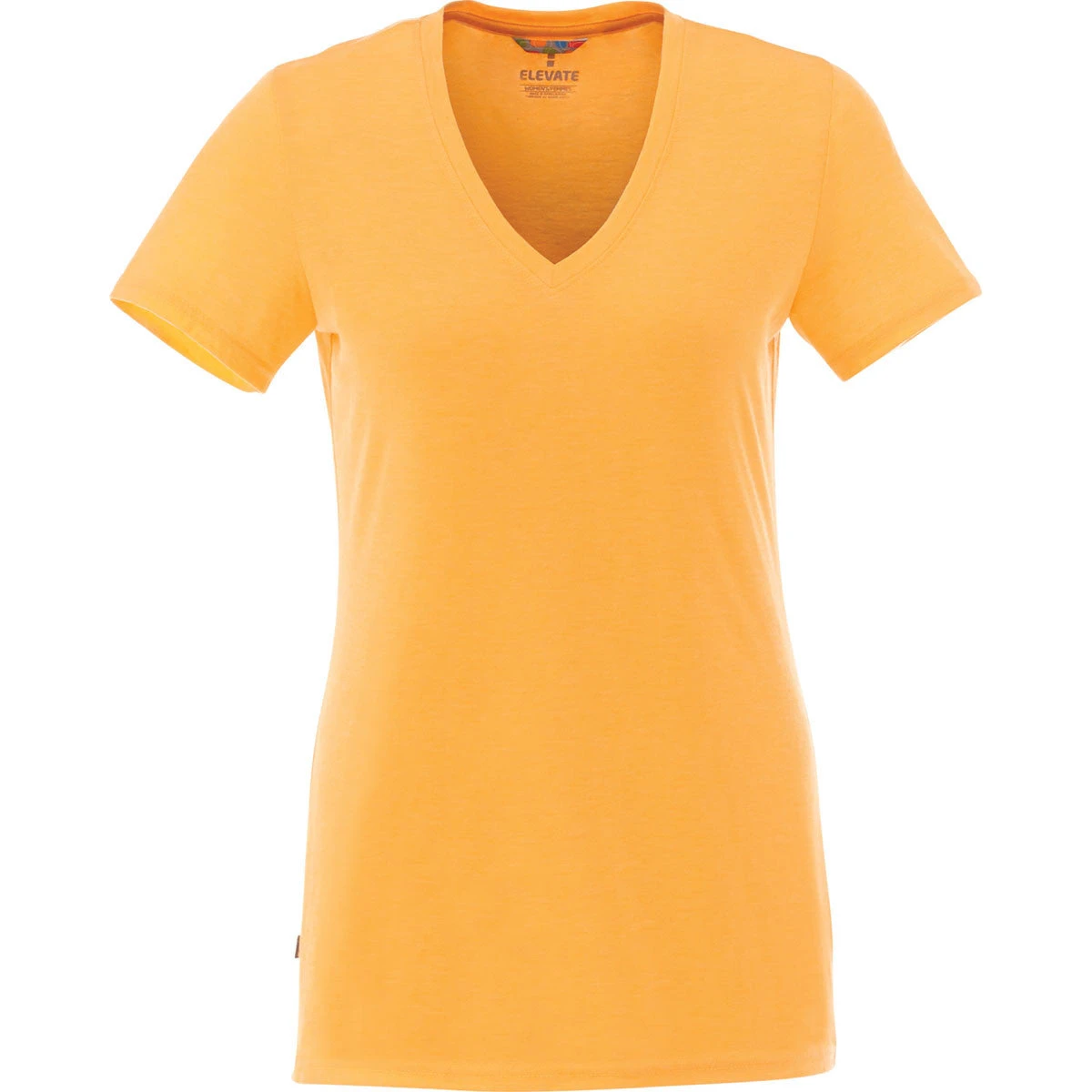 If you want to build the ideal corporate gift, where should you start? What about a work uniform? A branding item? A company gift? There’s nothing like a quality T-shirt to handle all of the above, particularly when you’re talking about a piece like the Elevate Women’s Amber Heather Sarek V-Neck Short Sleeve Tee you see here. It offers details like the seams while still providing the durability and comfort needed to ensure that it gets worn again and again. Just add your unique logo to this shirt to fashion it into something more than a mere T-shirt: turn it into a great way to brand your company.