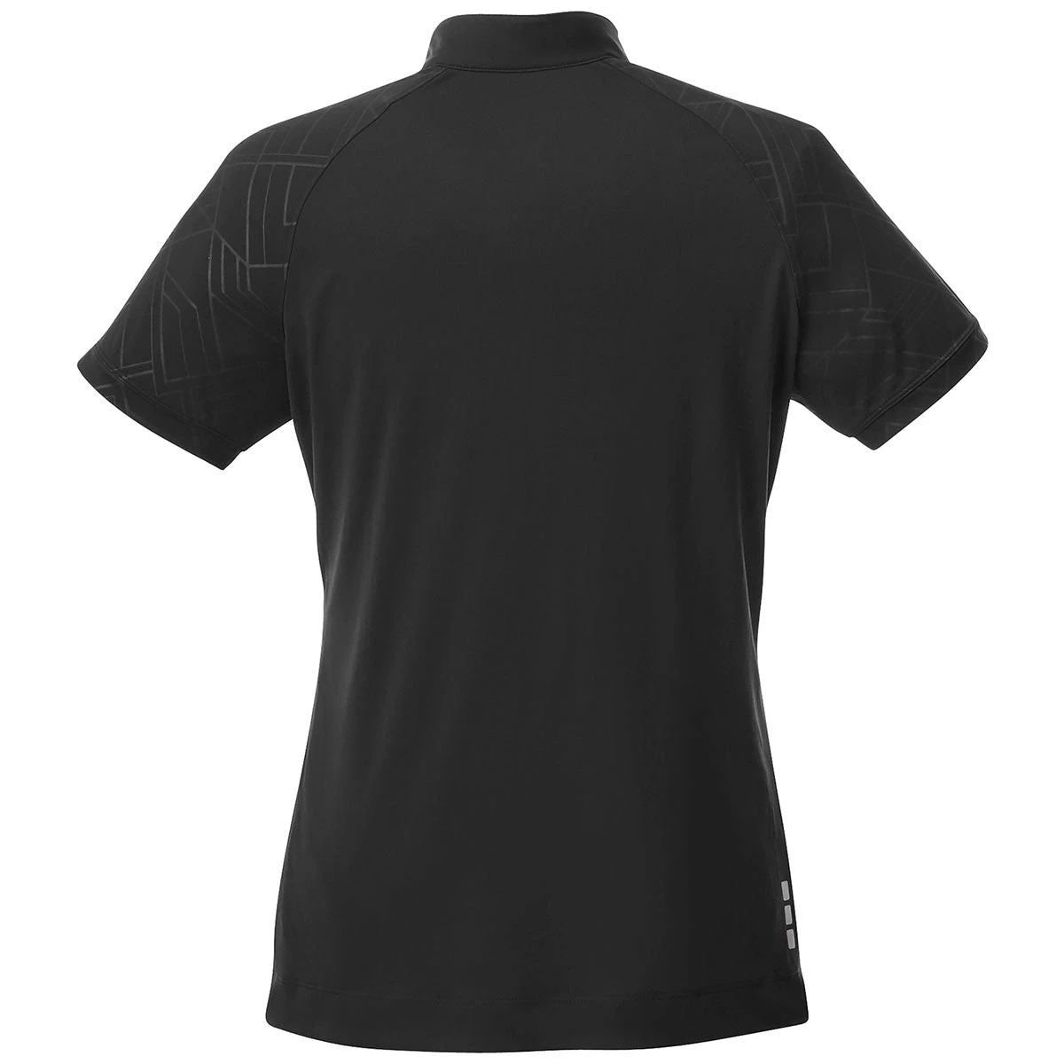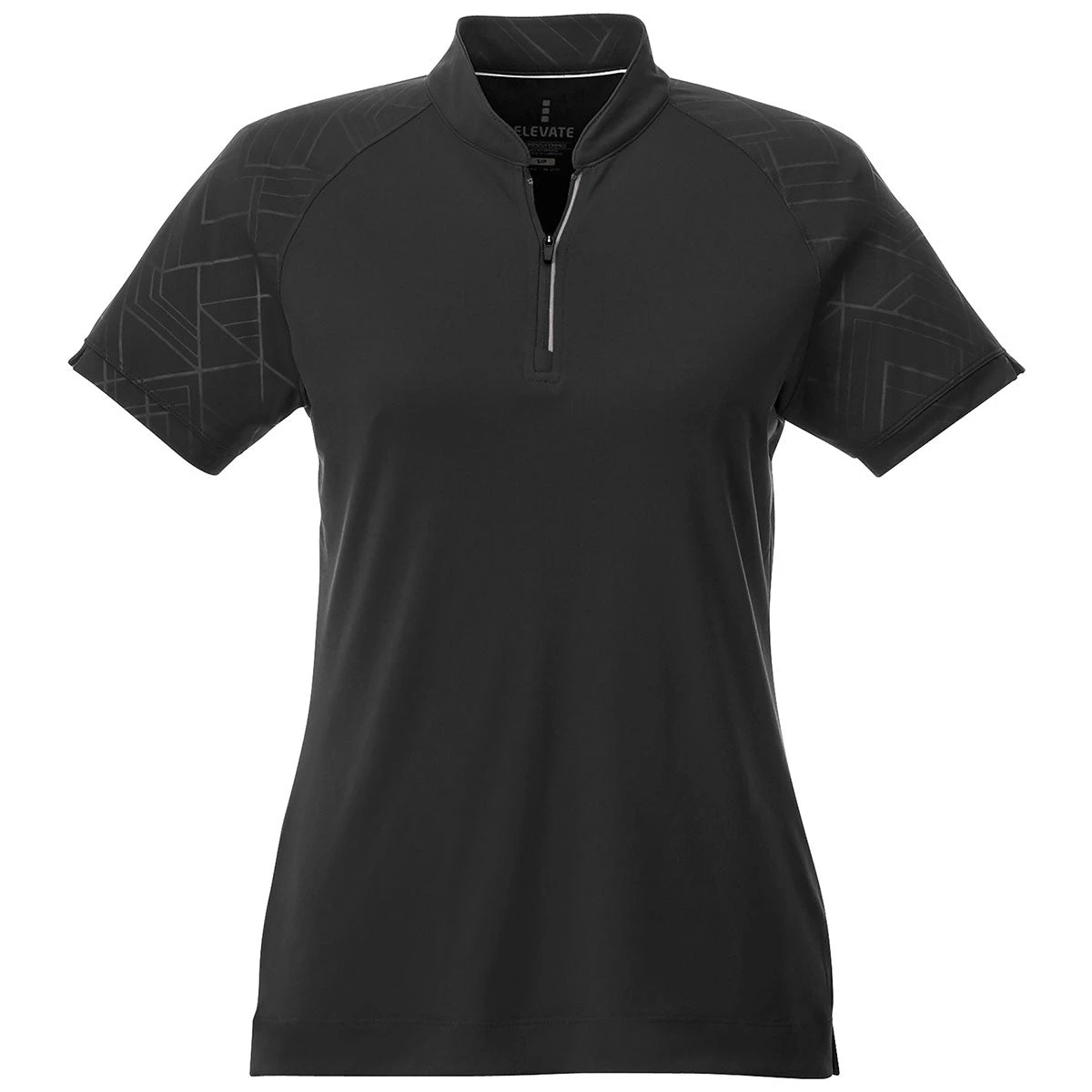 With the custom Elevate Women’s Black Hakone Short Sleeve Polo as your latest corporate apparel gift, you are guaranteed to have happy, productive employees. This stylish polo shirt has a unique Mandarin color and zippered front, providing a unique twist to the usual style of polo shirt. Four different colors are available with this custom embroidery logo shirt and other fabulous features include sleeves with creative graphic pattern, shaped seams and a tapered waist. The shirt material is made of a moisture-wicking, breathable fabric which also boasts UV protection, making it a perfect gift to hand out at golf events, as well as offer to your employees at the office.
