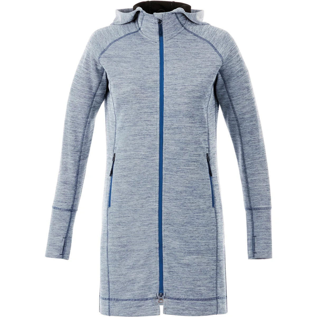 Elevate Women’s Invictus Heather Odell Knit Zip Hoody is not only on point, but comes in a functional tunic length for women who want to look and feel their best. Perfect as a corporate gift or as required employee apparel, no one will complain about this moisture wicking hoody with sleeve cuffs, ear bud cord guide, exit port, and thumb exits. Whether working in cold weather or taking part in a team building activity these hoodies with a custom logo will be a must have. Corporate embroidery is a great way to showcase your company while allowing everyone to look their best. Order several in one of four available colors and a range of sizes!