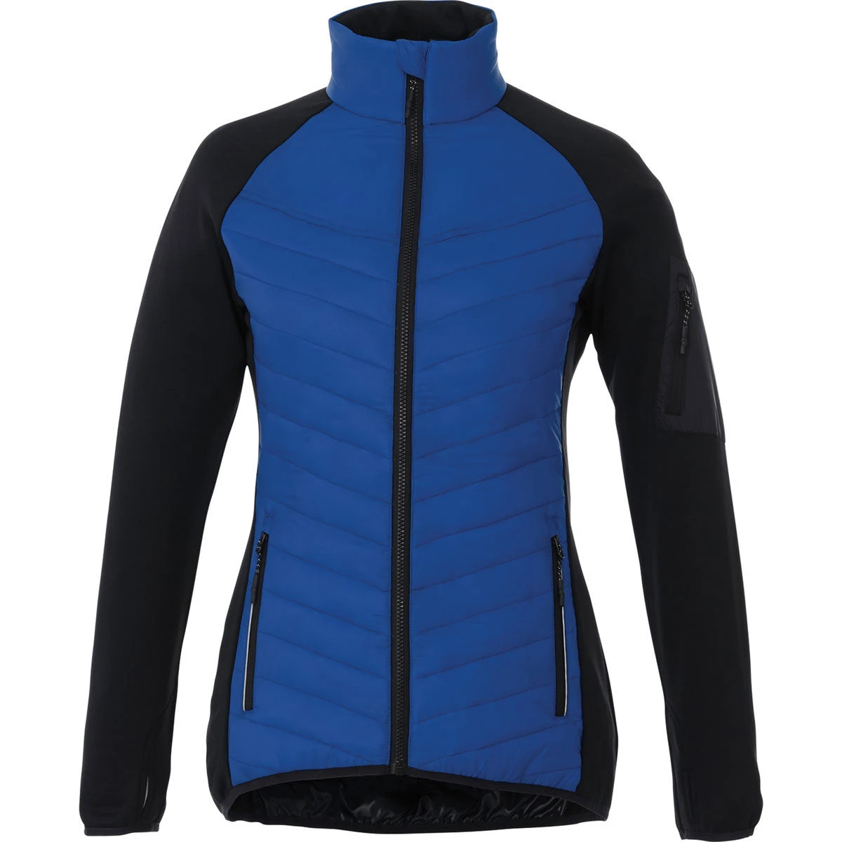 In need of some cold weather gear people will actually want to wear? Just look at the Elevate Women’s New Royal/Black Banff Hybrid Insulated Jacket you see here. Not only does it include a stylish flair that makes any outfit better for layering, but it has everything else you need in terms of functionality. That includes accessible pockets, durable seams, and a comfortable silhouette. But this jacket isn’t complete on its own. Add your custom logo to this jacket to boost your brand-ability, whether that means through marketing promotions or simply through…well, having your custom logo proudly displayed on an awesome jacket.