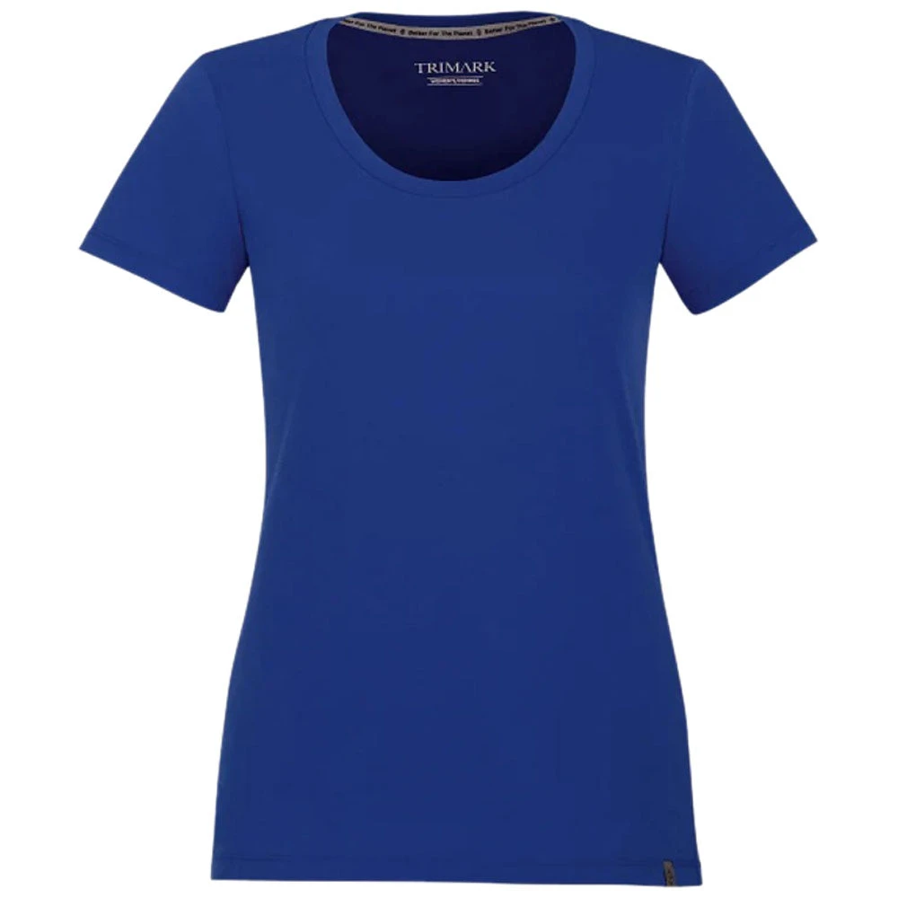 Enjoy a custom look with the Elevate Women’s New Royal Somoto Eco Short Sleeve Tee. The versatile tee is comfort, easy to wear, and eco-friendly with recycled materials. Great to wear alone in warmer weather or layer with a hoody or jacket, the short sleeve tee can sport your embroidery with ease and style. Place an order today.