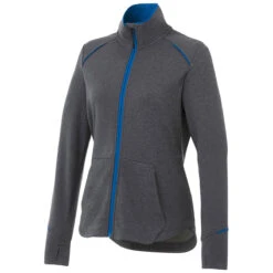 Add a company logo to the Elevate Women’s Olympic Blue/Heather Charcoal Tamarack Full Zip Jacket for a professional look that is also fun and functional. This sporty full-zip easily moves from the office to the soccer field while still looking great. This snag resistant, wash and wear jacket has a pop of color to create an on trend look no matter how often you wear it. Add a custom logo to wear for special events or to use as employee apparel. Thumb exits make layering easy and zippered pockets keep your valuables safe and secure. Perfect for chilly fall weather or light winter days.